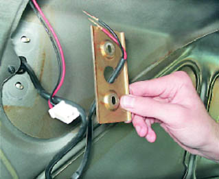 ...выводя при этом жгут проводов дополнительного сигнала торможения из отверстия в крышке багажного отделения.