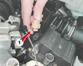 4. Освободив фиксатор (1), отсоединяем колодку проводов от модуля зажигания.