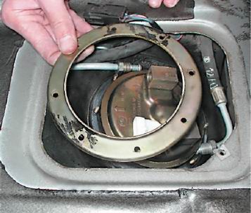 8. Снимаем прижимное кольцо топливного модуля. Под ним установлено дистанционное кольцо.