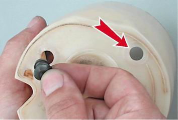...и ориентируем его в баке так, чтобы стрелка была направлена в сторону багажника.