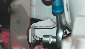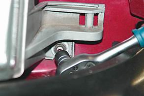 8. Торцовым ключом на 10 с трещоткой откручиваем гайку нижнего левого крепления фары.