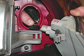9. Отсоединяем от фары 2 колодки электрического разъема и снимаем фару.