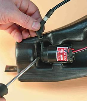 2. Отсоединяем шланг подачи жидкости, шлицевой отверткой поддеваем мотор стеклоомывателя и вынимаем его из уплотнительной втулки, расположенной в отверстии корпуса бачка стеклоомывателя.