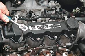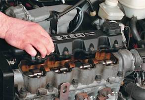 На двигателе G15MFСтепень сложности: 3. 1. Надежно устанавливаем автомобиль на смотровую яму или эстакаду (см. "Стандартные операции"), ставим рычаг переключения передач в нейтральное положение. 2. Отсоединяем провод от отрицательного вывода аккумуляторной батареи (см. "Стандартные операции"). 3. Снимаем ремень ГРМ (см. "Зубчатый ремень привода газораспределительного механизма - проверка, снятие и установка"). 4. Торцовым ключом на 10 с трещоткой откручиваем 8 болтов крепления крышки головки блока цилиндров, предварительно сняв наконечники высоковольтных проводов со свечей зажигания и высоковольтные провода с кронштейнов.
