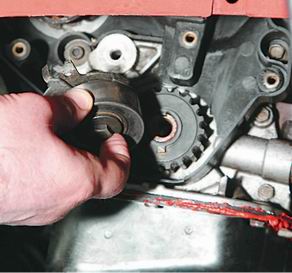 7. Снимаем зубчатый шкив распределительного вала.