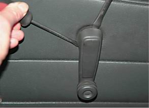 4. Шлицевой отверткой отжимаем фиксатор и снимаем декоративную накладку подлокотника.