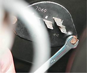 4. Рожковым ключом на 7 откручиваем 2 самореза крепления платы гасящего сопротивления мотора вентилятора.