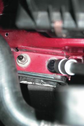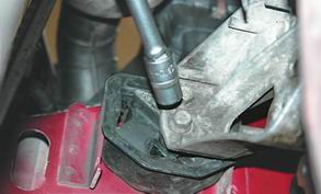 8. Головкой на 17 откручиваем 2 гайки крепления опоры к лонжерону и снимаем опору силового агрегата.