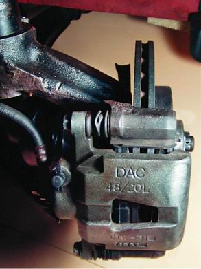 Тормозной механизм переднего колеса дисковый с плавающей скобой. Тормозной диск крепится колесными болтами к ступице переднего колеса. Суппорт тормозного механизма крепится к поворотному кулаку стойки передней подвески.
