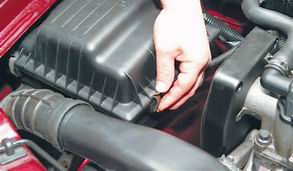 4. Снимаем 4 пружинных защелки крышки корпуса воздушного фильтра.