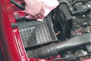 7. Удаляем грязь из корпуса и крышки корпуса воздушного фильтра.