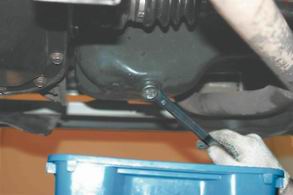 4. Накидным ключом на 19 откручиваем пробку сливного отверстия масляного поддона двигателя.