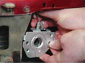 4. Извлекаем замок капота и отсоединяем наконечник троса привода капота.