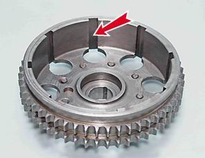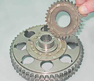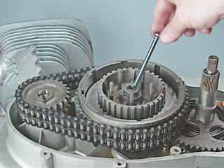 12. Аккуратно снимаем цепь со звездочек, вынимаем внутренний барабан сцепления из наружного.