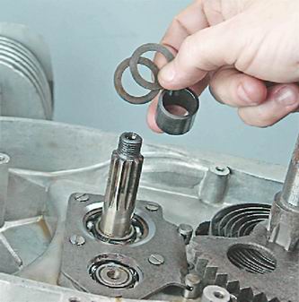 13. Снимаем втулку и шайбы с первичного вала коробки передач.