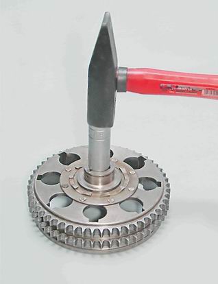 19. Подходящей торцовой толовкой, легкими ударами выбиваем шариковый подшипник барабана сцепления.