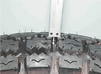 Правила дорожного движения запрещают эксплуатацию мотоциклов и мопедов, если высота протектора шин стала меньше 0,8 мм. Измерять высоту протектора удобно глубиномером штангенциркуля.