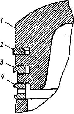 Рис. 31. Расположение поршневых колец в канавках поршня: 1 - поршень; 2 - компрессионное кольцо верхнее; 3 - компрессионное кольцо нижнее; 4 - маслосъемное кольцо Рекомендуется во всех случаях разборки двигателя после пробега 60000 км заменять поршневые кольца. Это, с одной стороны, исключит необходимость повторной разборки двигателя в случае износа поршневых колец при дальнейшей эксплуатации автомобиля, а, с другой стороны, явится профилактикой для повышения общего срока службы двигателя. Если гильзы цилиндров имеют незначительные износы и не требуют ремонта, то вместо старых колец используйте ремонтные кольца номинального размера. Ремонтные кольца номинального размера можно использовать, если зазор в замке колец, вставленных в цилиндр, не превышает 0,75 мм. Смена поршней Для замены изношенных поршней необходимо подобрать по методике, указанной ниже, комплекты поршней с пальцами, с поршневыми и стопорными кольцами в количестве, требующемся на один автомобиль. Для обеспечения надлежащего зазора между гильзой цилиндра и юбкой поршня (0,05-0,07 мм), поршни после окончательной обработки сортируются на заводе-изготовителе по диаметру юбки на 5 групп, в которых упомянутый диаметр отличается на 0,01 мм. Буквенная маркировка групп наносится на поверхности днища поршня. На рис. 32 указано место замера диаметра юбки поршня.