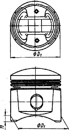 Рис. 32. Место замера диаметра юбки поршня На двигателе все поршни и гильзы должны быть одной размерной группы. Наряду с подбором поршней к гильзам цилиндров по диаметру, поршни подбирают также и по массе. Последнее необходимо для сохранения уравновешенности двигателя. Разница в массе самого тяжелого и самого легкого поршня в комплекте на двигатель не должна превышать 3 г. Поршни сортируются на заводе-изготовителе по массе на четыре группы, маркировку которых (1, 2, 3, 4) наносят на днище поршня с помощью металлического клейма. При установке поршней в гильзы цилиндров двигателя они должны быть по массе одной группы. Поршни, подобранные к гильзам цилиндров по размерам, пометьте порядковыми номерами гильз, к которым они подобраны. После того, как подбор поршней к гильзам закончен, подберите поршневые пальцы к поршням и втулкам малых головок шатунов. Посадка поршневого пальца в бобышку поршня может быть в пределах от 0,0025 мм натяга до 0,0025 мм зазора. Зазор между поршневым пальцем и отверстием втулки головки шатуна должен быть в пределах 0,0045-0,0095 мм. Для облегчения подбора поршневые пальцы, поршни и втулки малых головок шатунов сортируются на четыре размерные группы, диаметры которых отличаются на 0,0025 мм. Каждая группа имеет свое цветовое обозначение. При изготовлении деталей маркировочную краску наносят: у поршней - на нижнюю поверхность одной из бобышек, у поршневых пальцев - на внутреннюю поверхность с одного конца, на шатуне - у малой головки. Поршневой палец, принадлежащий к определенной размерной группе, подбирают при сборке к поршню и втулке шатуна, принадлежащим к этой же размерной группе. При номинальном зазоре между поршневым пальцем и втулкой шатуна поршневой палец, смазанный маслом для двигателя, должен плотно входить во втулку под усилием большого пальца правой руки (см. рис. 26). Допускается при подборе новых пальцев и шатунов комплектовать их из двух смежных размерных групп. Во всех случаях подбирать поршневые пальцы к шатунам необходимо при температуре воздуха в помещении 20+3°С. Поршневой палец, подобранный к поршню и шатуну, смазывайте маслом для двигателя и вставляйте в бобышки поршня и в малую головку шатуна, предварительно нагрев поршень в сосуде с водой до температуры 45-75°С. При сборке поршней с шатунами следите за тем, чтобы выбитая на днище поршня стрелка была обращена в сторону расположения установочного выступа на теле шатуна и паза на крышке. Имейте в виду, что ось поршневого пальца смещена относительно оси поршня на 1,5 мм. После замены поршней собранный двигатель подвергните обкатке. Смена вкладышей шатунных и коренных подшипников Диаметральный износ вкладышей и шеек коленчатого вала не всегда является определяющим критерием смены вкладышей подшипников. В процессе работы двигателя в антифрикционный слой вкладышей вкрапливается значительное количество твердых частиц (продуктов износа деталей, абразивных частиц, засасываемых в цилиндры двигателя с воздухом и т. п.). Поэтому такие вкладыши, имея часто незначительный диаметральный износ, способны вызвать в дальнейшем ускоренный износ шеек коленчатого вала. Следует также учитывать, что шатунные подшипники работают в более тяжелых условиях, чем коренные. Интенсивность их износа несколько превышает интенсивность износа коренных подшипников. Таким образом,