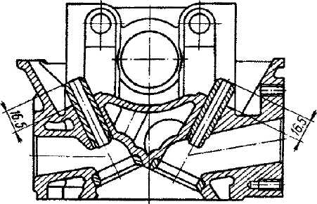 Рис. 39. Размер фасок для дополнительного шлифования седла клапана Проверка герметичности клапанов Проверить герметичность клапанов можно следующими способами: - по разрывам слоя краски, наносимой на фаски седел и головок клапанов; - по просачиванию керосина, заливаемого в камеру сгорания; - с помощью пневматического приспособления низкого давления, принципиальная схема которого изображена на рис. 40.