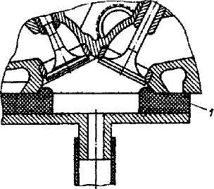Рис. 41. Воздушный колокол: 1 - уплотнитель Таким же образом проверьте герметичность клапанов остальных цилиндров. В случае негерметичности снимите клапаны, притрите их и повторно проверьте на герметичность. Притирка клапанов к седлам Для лучшего прилегания рабочей фаски клапана к фаске на седле притрите эти поверхности друг к другу с помощью приспособления (рис. 42). Прилегание притертых фасок друг к другу увеличивает компрессию в цилиндрах двигателя и значительно повышает срок службы выпускных клапанов.