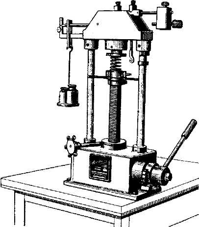 Рис. 42. Приспособление для притирки фасок клапанов: 1 - прижимной винт; 2 - вороток; 3 - стержень клапана Притирку клапанов производите в следующем порядке: - наденьте на стержень притираемого клапана отжимную пружину; - нанесите на фаску головки клапана тонкий слой притирочной пасты, приготовляемой в виде смеси мелкого наждачного порошка с маслом для двигателя; - вставьте клапан с отжимной пружиной в направляющую втулку воротка и зафиксируйте его прижимным винтом; - проворачивайте клапан с помощью приспособления в обе стороны, периодически слегка прижимая его к седлу. При притирке не снимайте с рабочих фасок клапанов и седел слишком много металла, так как это сокращает количество ремонтов седла и клапана и тем самым уменьшает общую продолжительность их службы. К концу притирки уменьшите содержание наждачного порошка в притирочной пасте, а с момента, когда притертые поверхности станут совершенно гладкими и примут ровный сероватый цвет, притирку вести только на одном чистом масле. Внешним признаком удовлетворительной притирки является однотонный матово-серый цвет (без черных пятен) на рабочих поверхностях головки клапана и его седлах. Проверка состояния клапанных пружин Каждый раз при выполнении разборочно-сборочных операций клапанного механизма головки цилиндров проверяйте упругость клапанных пружин. Упругость пружин проверяется на весах (рис. 43).