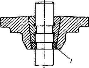 Рис. 43. Весы для проверки упругости пружин клапана Для новых пружин усилие должно быть: - 398-764 H (40,7-47,3 кгс) - для большой пружины при длине 27,5 мм и 160-185 H (16,3-18,9 кгс) при длине 36,5 мм; - 242-280 H (24,6-28,6 кгс) - для малой пружины при длине 25,5 мм и 100-116 H (10,2-11,8 кгс) при длине 34,5 мм. Если при проверке окажется, что усилие пружины будет на 10 % меньше усилия новых пружин, то пружину замените. Следует иметь в виду, что усилие, создаваемое пружиной, уменьшается, если фаска клапана и фаска седла были подвергнуты шлифованию, так как при этом увеличивается рабочая высота пружины и, следовательно, уменьшается усилие прижима клапана к седлу. Поэтому при сборке деталей клапанного механизма под опорные тарелки пружин подкладывайте дополнительные шайбы. Толщину шайб выбирайте так, чтобы при закрытом клапане длина большой пружины была 36,5 мм. Проверка состояния уплотнительных шайб тарелок пружин клапанов Во время работы двигателя в зазорах между сухарями клапана может скапливаться масло, которое просачивается по стержню клапана к торцу направляющей втулки и затем по зазору во втулке - в камеру сгорания, где попадает на электроды свечи и вызывает перебои в зажигании, а сгорая, дает дымный выхлоп из глушителя. Для защиты от проникновения масла на стержне клапана установлена резиновая уплотнительная шайба 1 (рис. 44). Уплотнительная шайба все время работает в масле при высоких температурах и поэтому от времени твердеет и теряет упругость, что нарушает уплотнение. В связи с этим после каждой разборки клапанного механизма заменяйте старые уплотнительные шайбы на новые. Окончательную проверку резинового уплотнения тарелок пружин клапанов производите после сборки головки цилиндров.