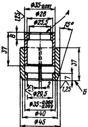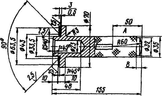 Рис. 121. Оправка для запрессовки сальника ведущей шестерни в горловину картера редуктора. Материал - сталь 45. Термообработка: калить HRC 40-45, на участке А отпустить до HRC 28-32