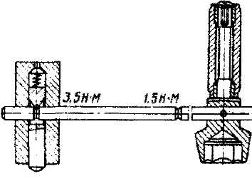 Рис. 124. Контрольное приспособление проверки момента трения (сдвига) подшипников ведущей шестерни редуктора