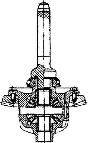 Установка ведомой шестерни и дифференциалаНапрессовку ведомой шестерни на коробку собранного дифференциала производите с помощью деревянного или резинового молотка. Перед напрессовкой вверните несколько резьбовых шпилек в отверстия ведомой шестерни. Они помогут совместить отверстия ведомой шестерни с отверстиями во фланце коробки. Шпильки можно изготовить из болтов, опилив головки. Приверните ведомую шестерню болтами (момент затяжки 70-85 Н·м [7-8,5 кгс·м]). С помощью оправки (рис. 125) напрессуйте внутренние кольца подшипников дифференциала (рис. 130).