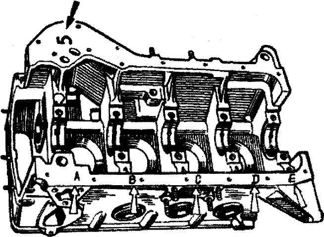 Блок цилиндровДля подготовки блока цилиндров к ремонту и оценки его технического состояния необходимо произвести общую очистку и осмотр блока цилиндров. Вымыть блок цилиндров, погрузив его в ванну с моющим раствором. Затем промыть его струей того же раствора под давлением, чтобы очистить масляные каналы. Тщательно продуть и просушить сжатым воздухом весь блок цилиндров, особенно систему масляных каналов. Осмотреть блок цилиндров. Если в опорах или других местах блока цилиндров имеются трещины, то блок цилиндров следует заменить. Основные размеры блока цилиндров приведены в табл. 2-3. Если имеется подозрение на попадание охлаждающей жидкости в картер двигателя, то надо проверить герметичность блока цилиндров на специальном стенде. Для этого необходимо заглушить все отверстия охлаждающей рубашки блока цилиндров и нагнетать в нее воду комнатной температуры под давлением 300 кПа (3 кгс/см2), при этом в течение двух минут не должно наблюдаться утечки воды из блока цилиндров. При обнаружении негерметичности блок цилиндров следует заменить. Проверить, не превышает ли зазор между цилиндром и поршнем 0,15 мм. Зазор определяется промером цилиндров и поршней. Диаметр цилиндра (рис. 2-21) измеряется в трех поясах как в продольном, так и в поперечном направлении двигателя (рис. 2-22). Диаметр поршня измеряется в плоскости, перпендикулярной поршневому пальцу, на расстоянии 52,4 мм от днища поршня. Примечание. Цилиндры блока по диаметру разбиты через 0,01 мм на пять классов: А, В, С, D, Е. Класс цилиндра помечен на нижней плоскости блока (рис. 2-23). На этой же плоскости, а также на крышках коренных подшипников клеймится условный номер блока цилиндров, который указывает на принадлежность крышек подшипников к данному блоку.