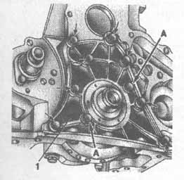 Рис. 2-151. Крепление передней крышки двигателя F3R: 1 - передняя крышка