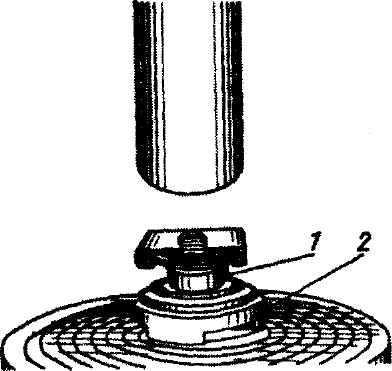Рис. 4-22. Запрессовка седла клапана сжатия в корпус: 1 - седло с оправкой и деталями впускного клапана; 2 - корпус клапана сжатия