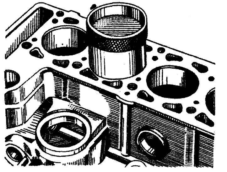 Сборка двигателя ВАЗСборку двигателя производить в следующем порядке: - вымытый и очищенный блок цилиндров установить на стенд и завернуть в него отсутствующие шпильки; - уложить в гнездо среднего подшипника и в его крышку вкладыши без выточки на внутренней поверхности, а в остальные гнезда и соответствующие крышки - вкладыши с выточкой. Примечание. Вкладыши подшипников и упорные полукольца коленчатого вала, а также поршни и манжеты перед установкой смазать моторным маслом; - уложить в коренные подшипники коленчатый вал и вставить в гнезда задней опоры два упорных полукольца (рис. 2-11), подобранных по толщине (см. раздел "Коленчатый вал и маховик");