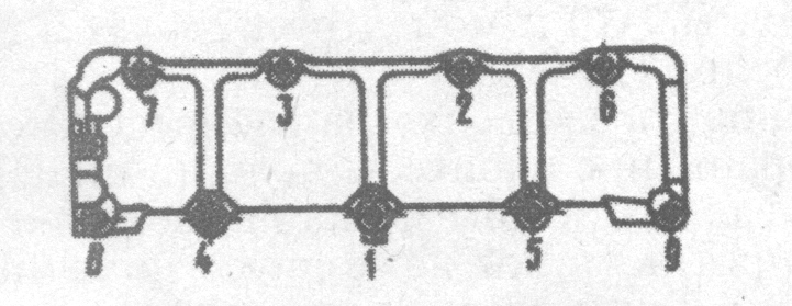Рис. 2-15. Порядок затягивания болтов крепления головки цилиндров двигателя ВАЗ