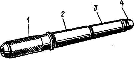 Рис. 2-29. Установка поршневого пальца двигателя ВАЗ на приспособление А. 60325 для запрессовки его в поршень и головку шатуна: 1 - валик приспособления; 2 - поршневой палец; 3 - направляющая; 4 - упорный винт
