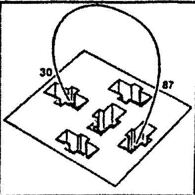 Рис. 2-163. Установка перемычки для автономного проверочного включения топливного насоса (устанавливается вместо удаленного реле включения топливного насоса) Для проверки давления, создаваемого топливным насосом, необходимо подсоединить манометр с тройником к топливной рейке. Затем, удалив реле топливного насоса на правом брызговике в отсеке двигателя установить перемычку между клеммами "30" и "87" (рис. 2-163), при этом топливный насос начинает работать без запуска двигателя. При этом давление создаваемое насосом должно быть 0,3 МПа (3 кгс/см2). На работающем двигателе эта величина должна составлять 0,25-0,3 МПа (2,5-3,0 кгс/см2) в зависимости от режимов работы двигателя. Для проверки производительности топливного насоса необходимо отсоединить топливоподающий шланг от топливной рейки и направить его в мерную емкость. Активизировать работу насоса и определить количество топлива в емкости получаемое за 30 сек. Эта величина должна составлять 650-670 мл., что соответствует производительности 80 л топлива в час. Топливный фильтр Топливный фильтр установлен на кронштейне, который крепится к поперечине кузова между лентами крепления топливного бака. Фильтр подлежит обязательной замене через 10000 км пробега автомобиля. Для замены фильтра необходимо отпустить гайки крепления лент топливного бака, отсоединить фильтр от хомутов и кронштейна. Установить фильтр согласно направлению движения топлива (на корпусе фильтра имеется стрелка). Система впрыска топлива Система впрыска топлива состоит из топливной рейки (рис. 2-164), выполненной в виде пустотелого корпуса с отверстиями, в которые устанавливаются форсунки 8, регулятора давления топлива 2, регулятора холостого хода, дроссельного узла, а также штуцеров 3 и 4, предназначенных для присоединения соответственно сливного отводящего и подводящего патрубков. Форсунки и регулятор давления топлива уплотнены в своих гнездах топливной рейки двумя резиновыми кольцами и закреплены пластинчатыми фиксаторами 6 с помощью винтов 7. Гнездо регулятора давления ступенчатое и образует седло для клапана регулятора. Топливная рейка двигателя своими четырьмя патрубками входит в отверстия головки блока двигателя, уплотнена в них резиновыми кольцами и закреплена двумя гайками на шпильках, ввернутых в головку блока.