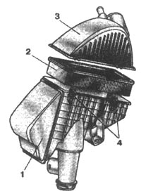 Рис. 2-171. Воздушный фильтр двигателя F3R: 1 - корпус; 2 - фильтрующий элемент; 3 - крышка; 4 - замки |