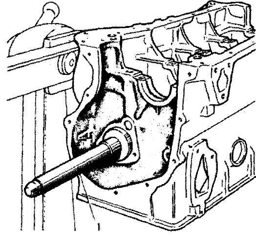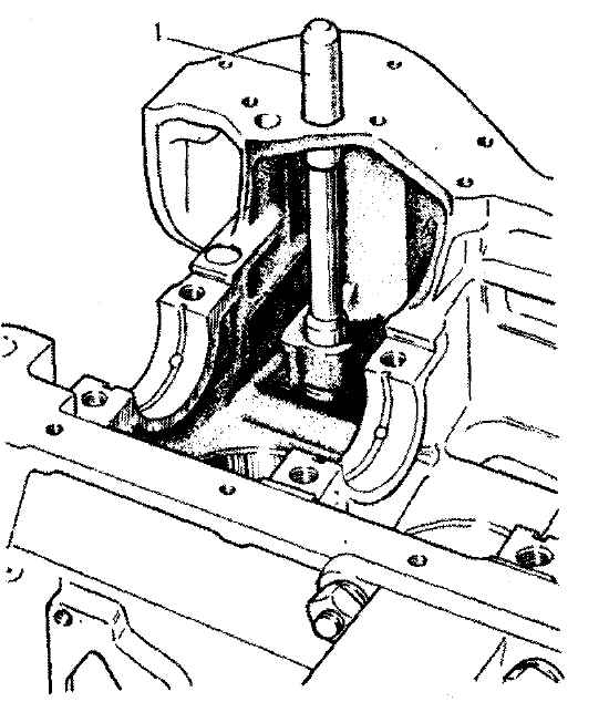 Рис. 2-60. Выпрессовка втулки шестерни привода масляного насоса и распределителя зажигания: 1 - оправка A.60326/R |
