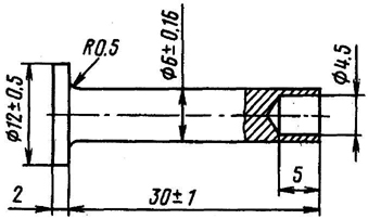 Рис. 8-41. Ремонтная ось ограничителя Установку двери на кузов необходимо производить в следующем порядке: - поднести дверь к проему на кузове и совместить отверстия в петлях; - вставить и запрессовать ранее выпрессованные оси верхней и нижней петель; - совместить отверстия в ограничителе и кронштейне ограничителя на кузове и вставить, а затем расклепать его ось. Проверить, как вращается дверь и работает ограничитель. |