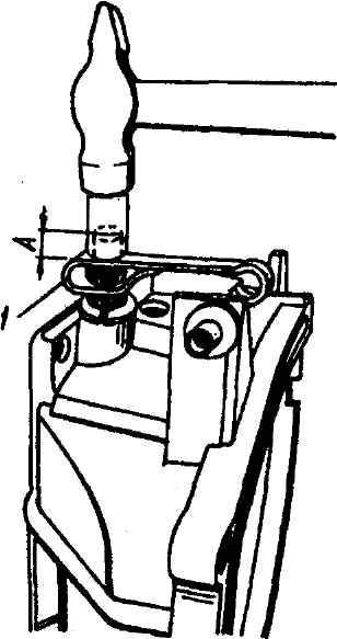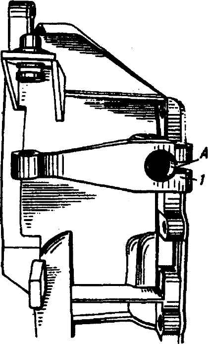 Рис. 3-22. Взаимное расположение вала и наружного рычага выключения сцепления: 1 - рычаг; А - метка на торце вала