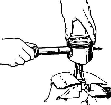 Рис. 2-33. Поршневой палец должен устанавливаться нажатием большого пальца руки