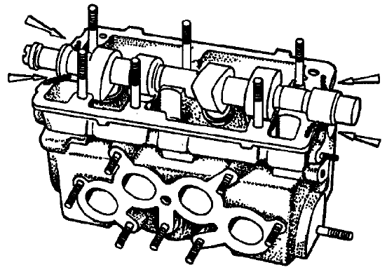 Рис. 2-49. Установочные втулки корпуса подшипников распределительного вала На поверхности головки блока цилиндров, сопрягающиеся с корпусами подшипников, в зоне крайних опор распределительного вала нанесите герметик КЛТ-75ТМ (рис. 2-50) или аналогичный ему герметик типа ТВ-1215 фирмы "Three Bond".