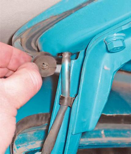 3. Отсоединяем наконечники проводов от фонаря освещения номерного знака и, сняв резиновую шайбу, извлекаем провод из отверстия в наружной панели двери (см. "Фонарь освещения номерного знака - замена ламп, снятие и установка"). 4. Отсоединяем держатели проводов от кронштейна двери.