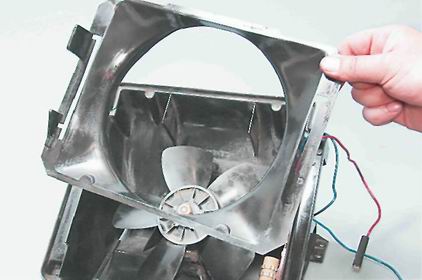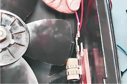9. Отсоединяем наконечник красного провода, идущего к вентилятору от вывода дополнительного резистора.