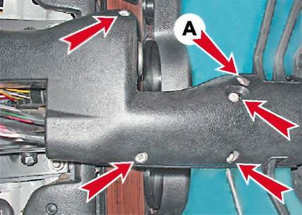 2. Крестовой отверткой отворачиваем четыре винта, соединяющих кожухи. Для автомобиля с трехрычажным подрулевым переключателем кроме винтов отворачиваем саморез А крепления кожухов к подрулевому переключателю.
