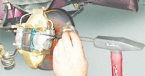 6. Выколоткой выбиваем пальцы из проушин цилиндров.
