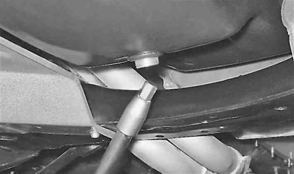 Примечание Согласно периодичности технического обслуживания необходимо через каждые 30000 км пробега промывать систему смазки двигателя. Для этого сливаем старое масло, не отворачивая масляный фильтр. Заливаем промывочное масло до метки "MIN" щупа, запускаем двигатель и даем ему работать на холостом ходу около 10 мин (см. рекомендации завода-изготовителя промывочного масла). Сливаем промывочное масло и заменяем масляный фильтр. Заливаем в двигатель моторное масло до требуемого уровня. 3. Шестигранным ключом на 12 мм отворачиваем пробку сливного отверстия поддона картера.