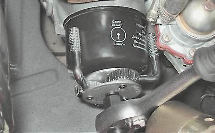 5. С помощью съемника или руками отворачиваем масляный фильтр.