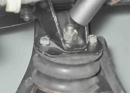 4. Через отверстие в поперечине тем же инструментом отворачиваем гайку нижнего крепления опоры.
